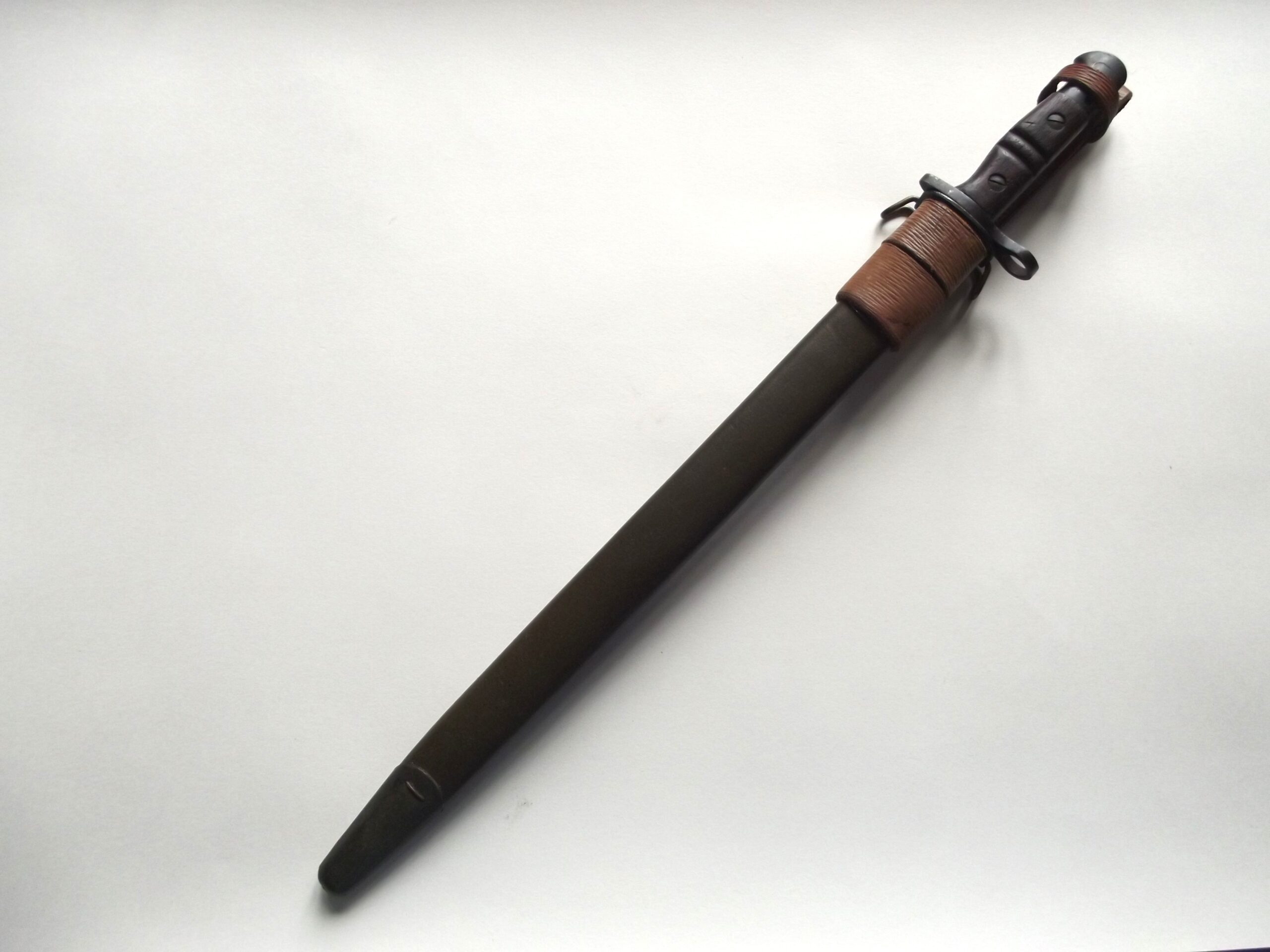 American P17 Remington bayonet and scabbard in good used condition. The bayonet is maker marked for Remington with the date 1918 above the Remington trade mark.