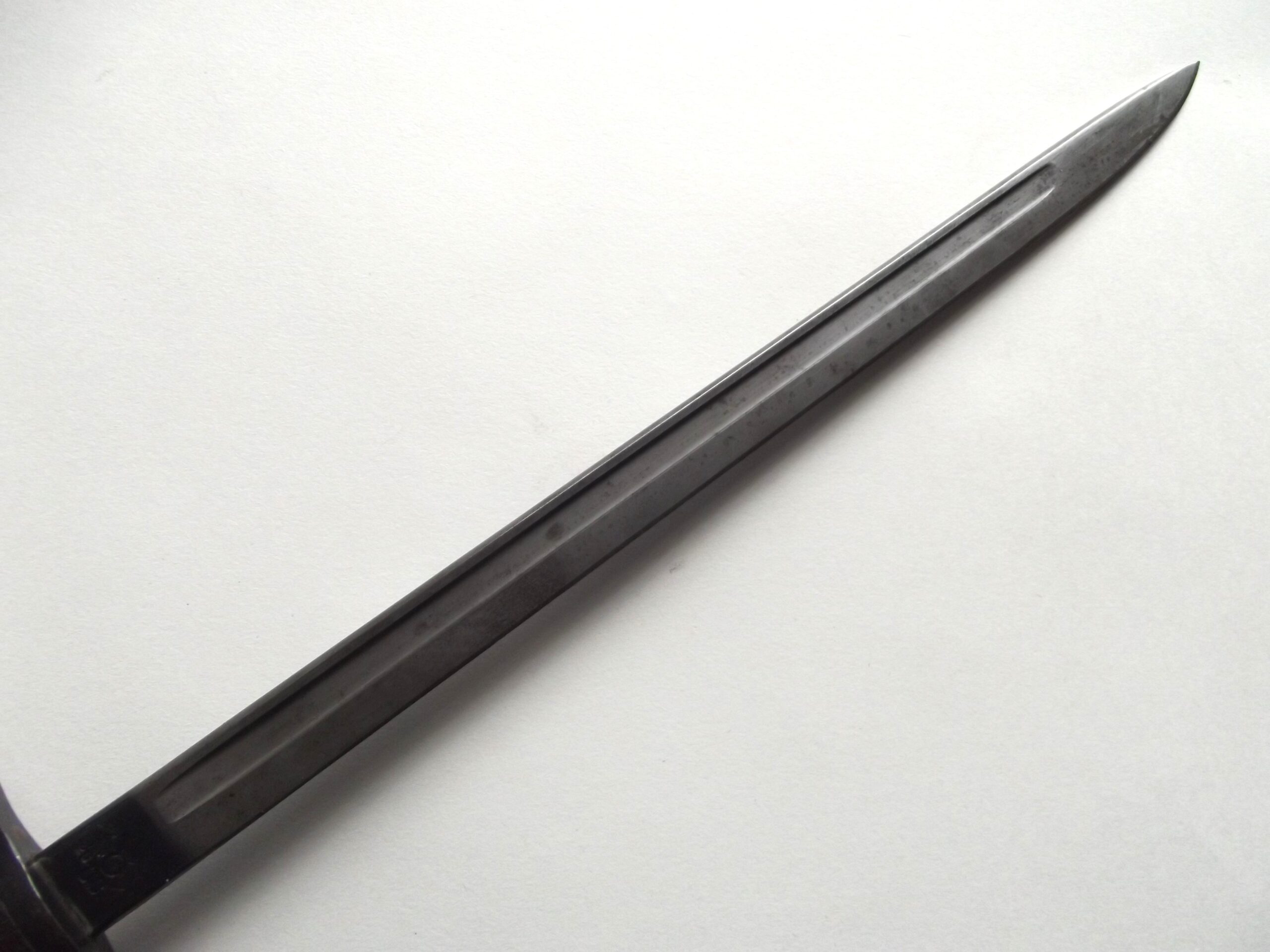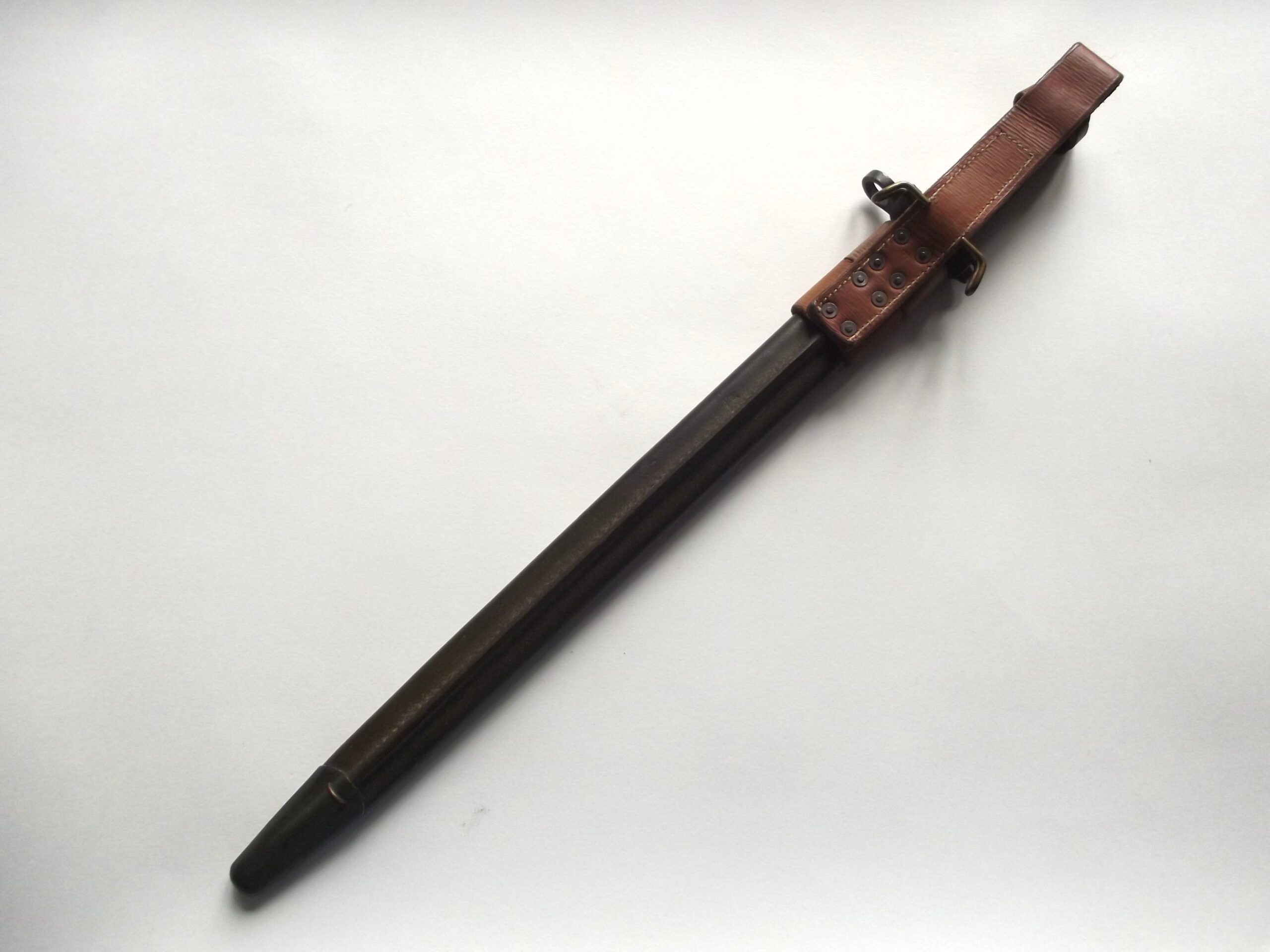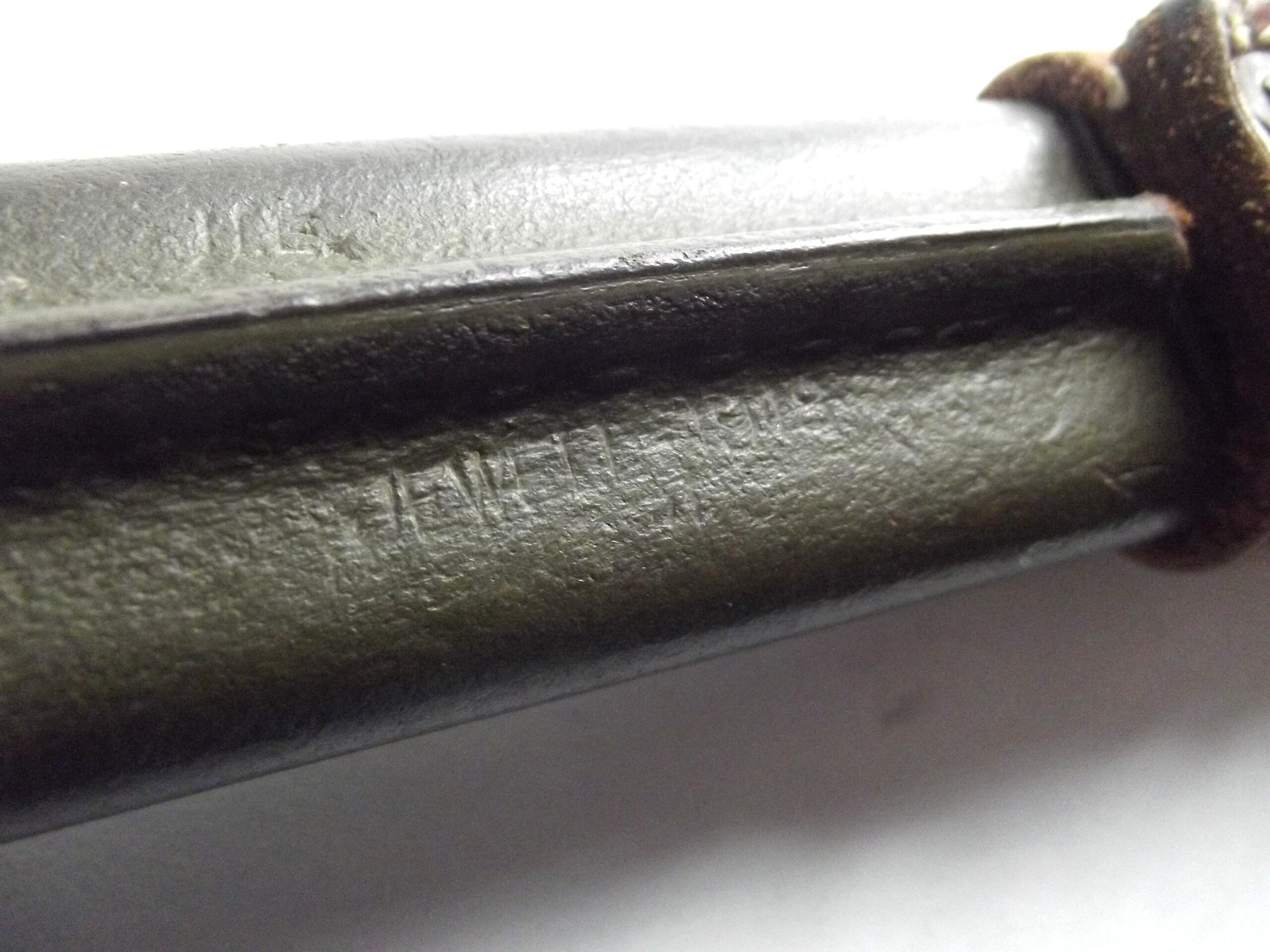 The blade of the bayonet is in good clean condition with its factory finish still intact and showing very minor age related colour. The bayonet retains its original wooden grips.