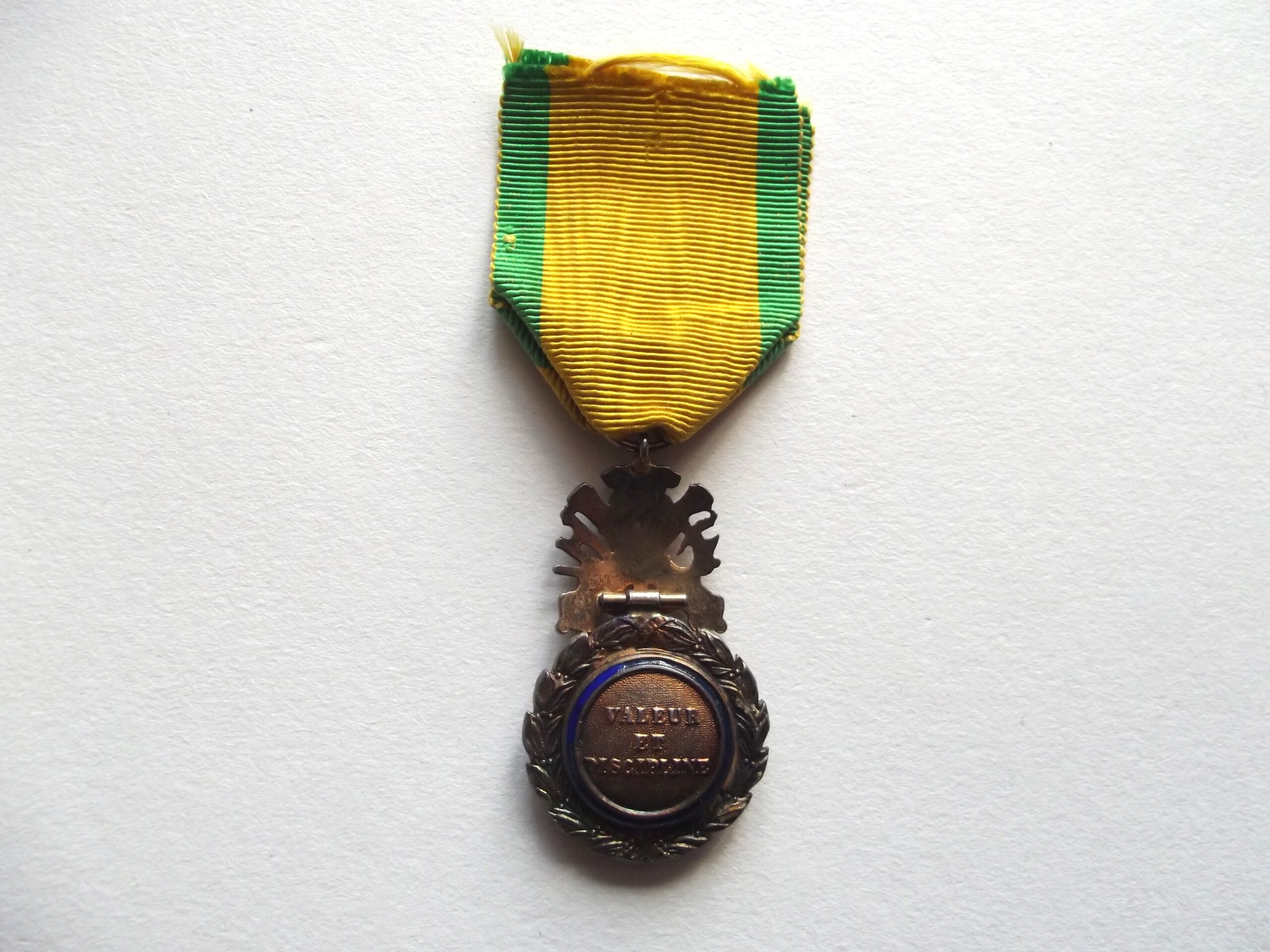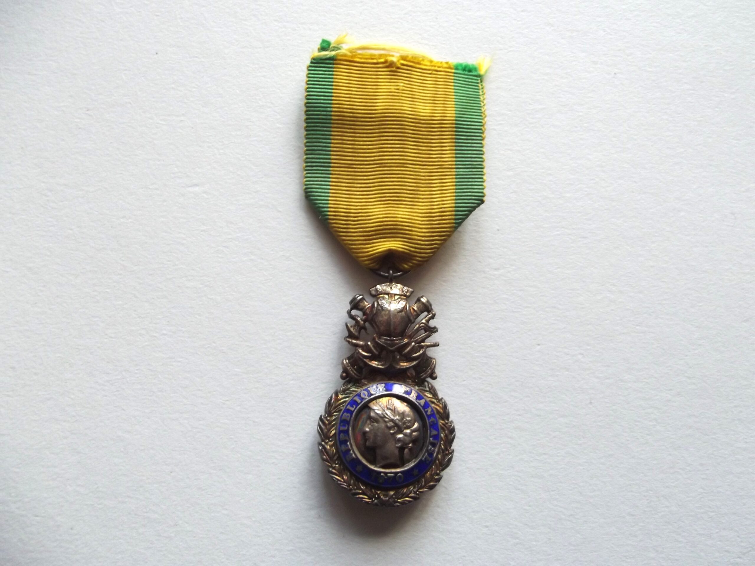 French 1870 medaille militaire (military medal) and part ribbon in good used condition. The medal shows age related wear and colour with the enamel finish showing age related wear.