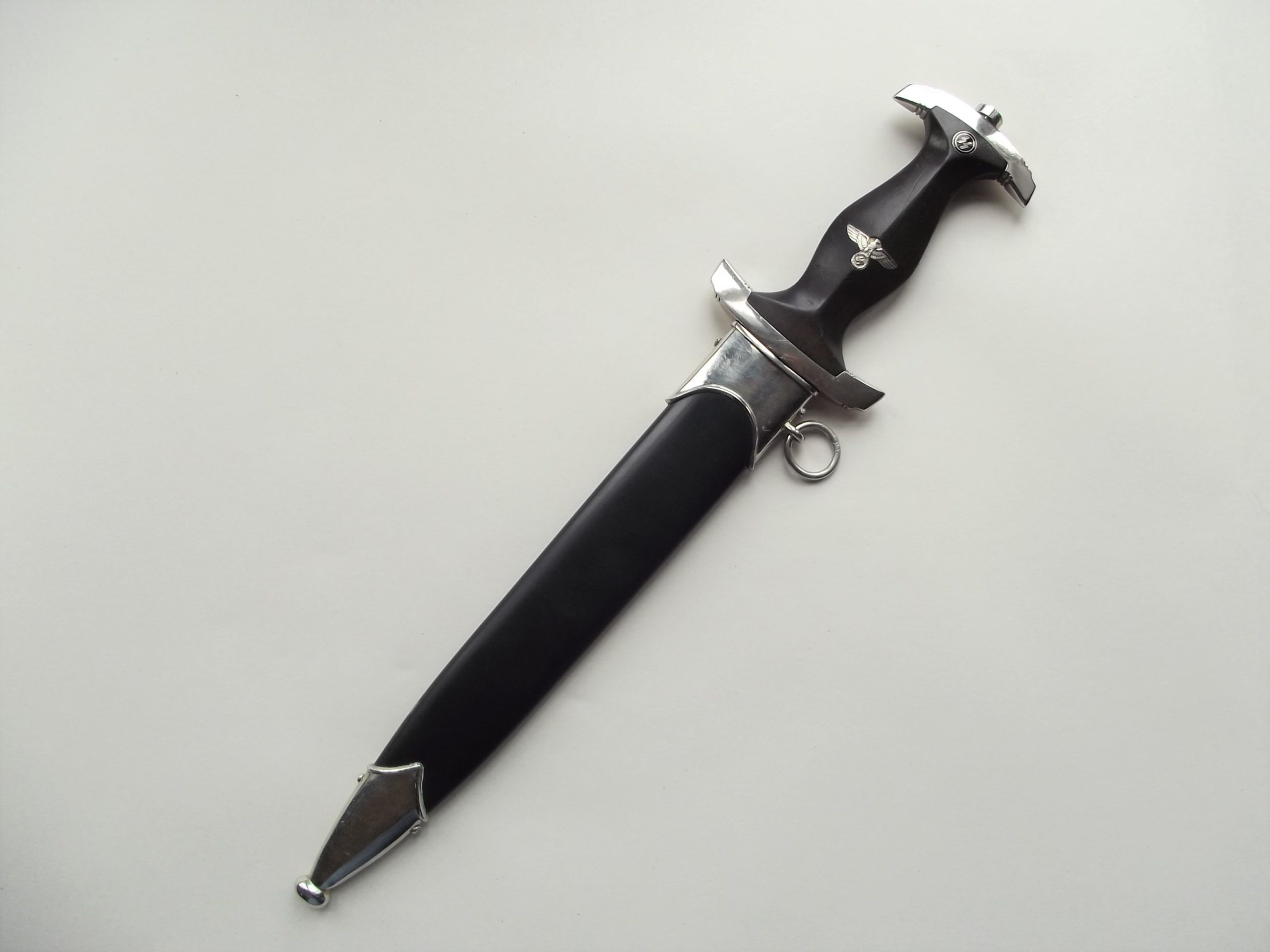 German early M33 SS dagger and scabbard in good condition with some light restoration.The dagger is in good condition with some light restoration to the blade and scabbard the maker is E.P & S which is for E.Pack & sons Solingen, the blade has been cleaned all be it very lightly it still has some cross graining showing with the acid etched maker mark and motto still clear to see in the photographs. The silver nickel fittings are a good fit to the handle with which still retains its colour with the eagle and roundel a very good fit to the handle and as per the photographs, the cross guard has the number 1 stamped on the back of the guard which again has been photographed the cross guard and pommel show signs of use and age with condition good.The handle does show age with some marks to the handle caused through age and use although it is free from any fractures and splits. The scabbard has been re-finished which can be seen in the photographs this was done professionally but does have a small area that has rubbed which again has been photographed, the scabbard retains it original silver nickel fittings and screws, the end of the scabbard does have a small ding which again has been photographed. The dagger and scabbard are a good addition to any collection even with the light restoration work that has been completed still a very good display item.The item is for UK sales only and you must be over the age of 18 to purchase so please remember to enter your date of birth on your registration.