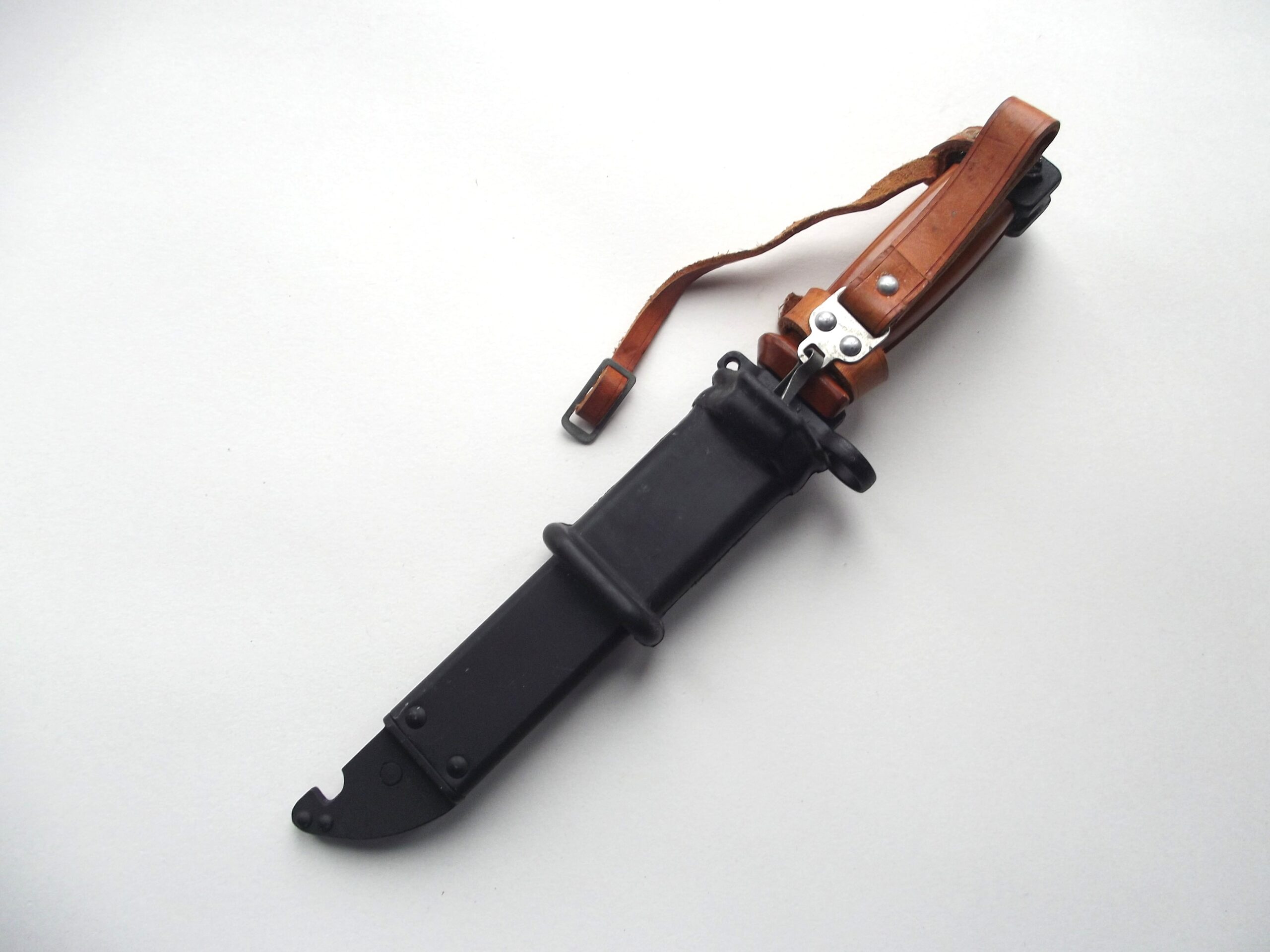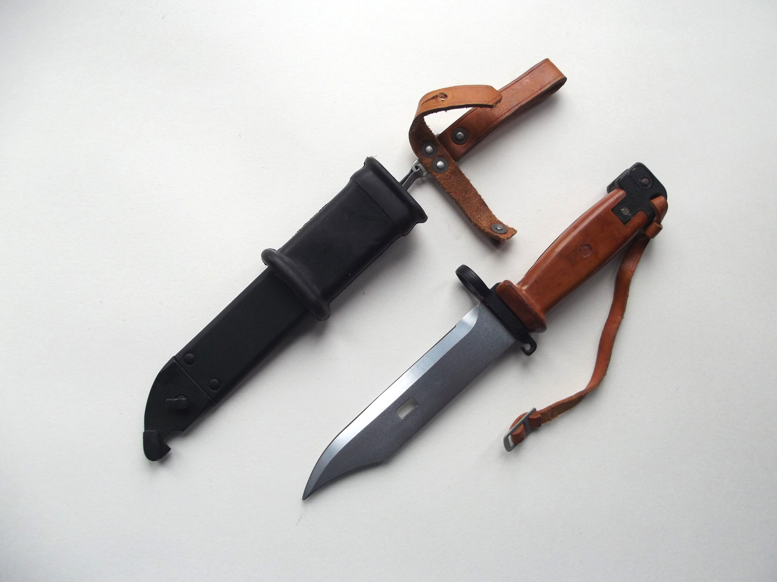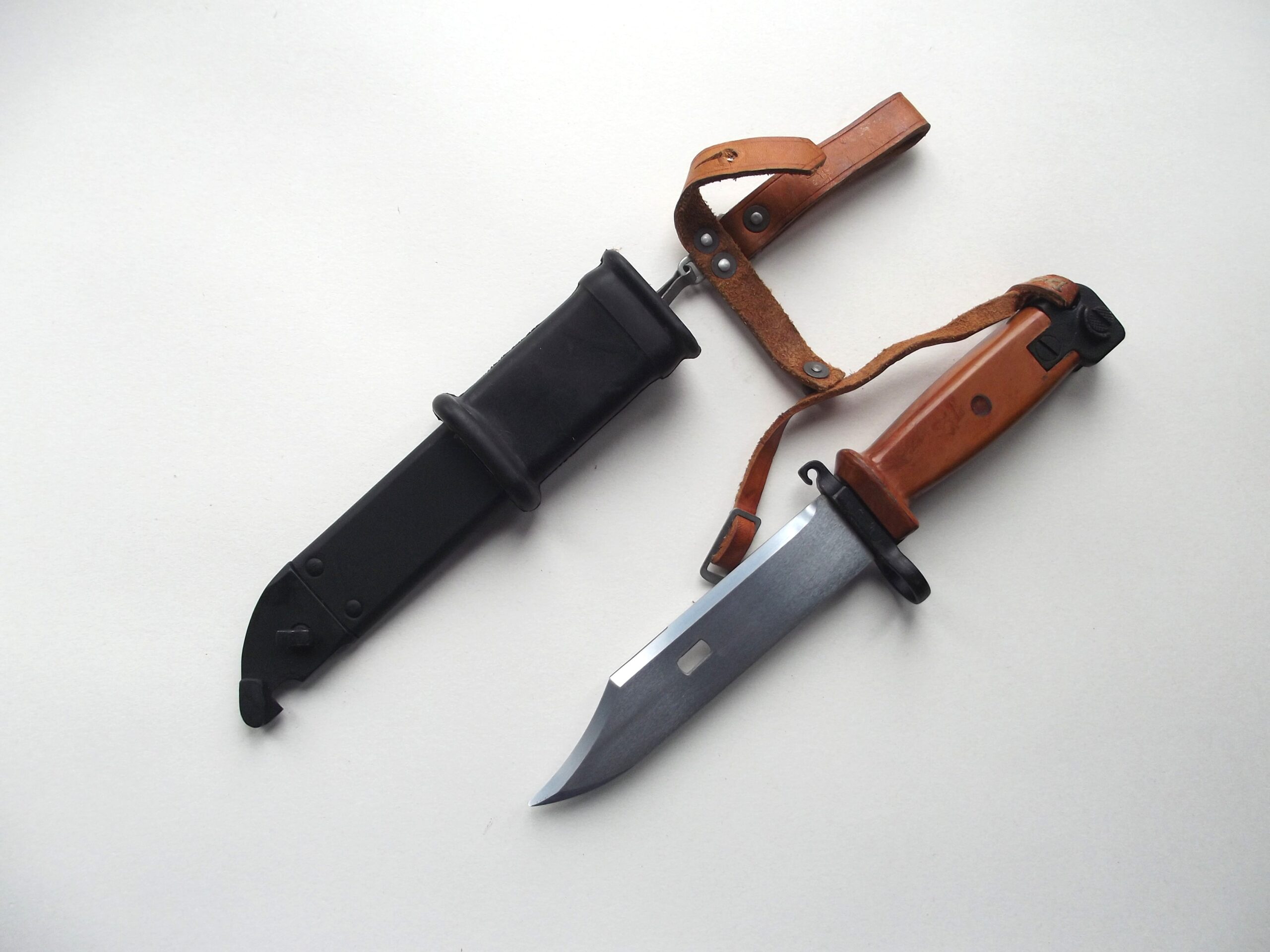 Polish AKM type 3 bayonet and scabbard in very good condition.  The bayonet and scabbard  have no issue numbers and look to be un-issued. Both in very good condition.