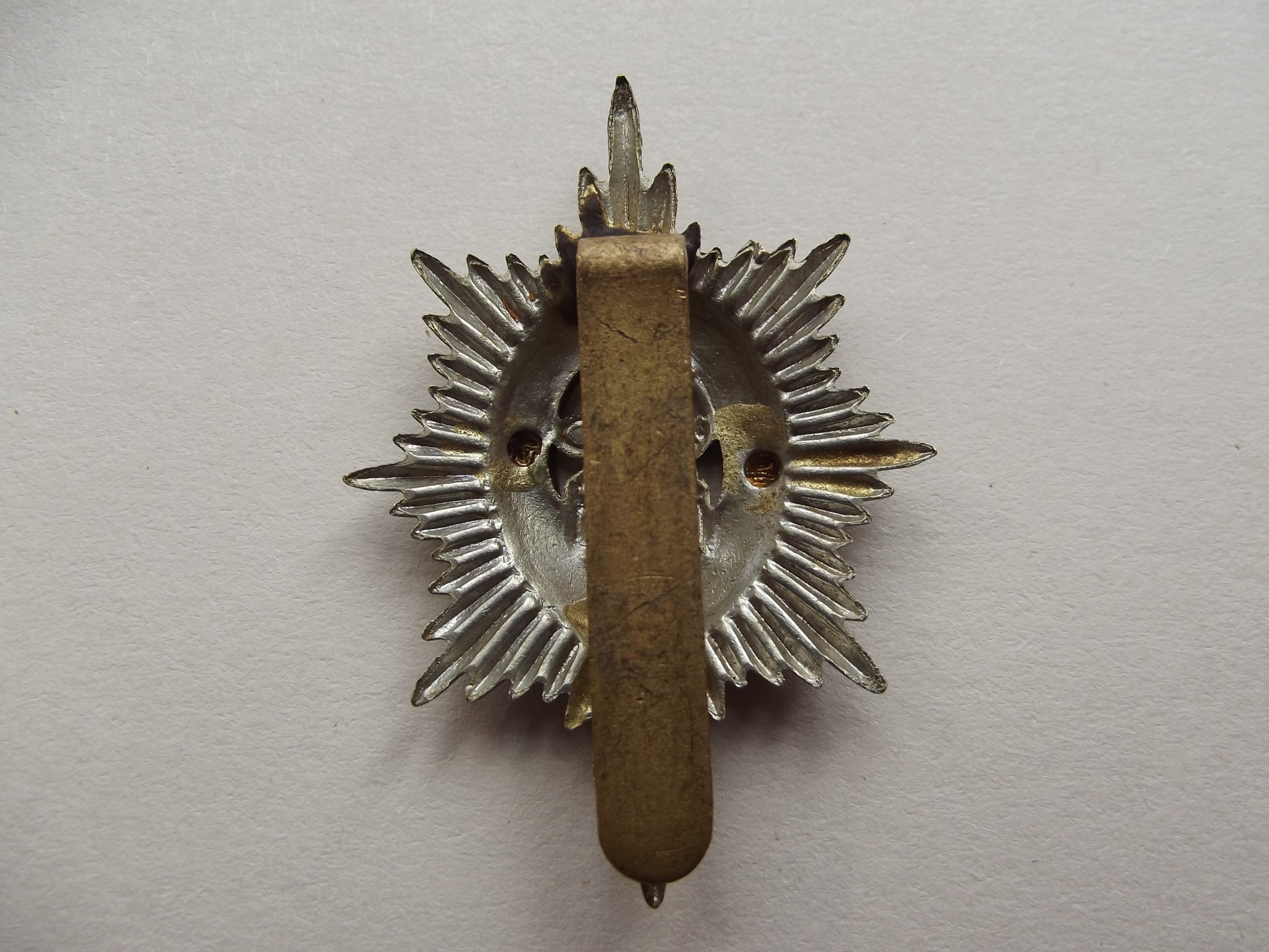 Worcestershire regiment cap badge in good used condition. The badge is bi-metal with a slider on the reverse .