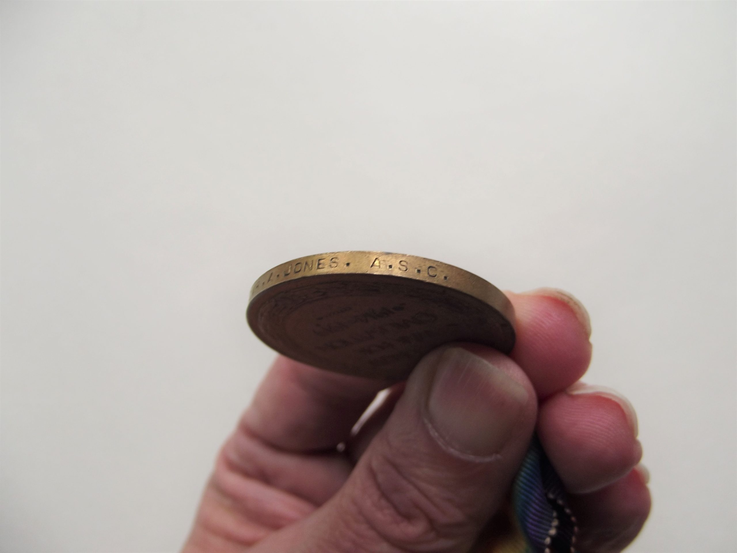 WW1 British victory medal Army service corps in good used condition. The medal is named to DVR A Jones A.S.C service number 14-161336 the medal has a part original ribbon.