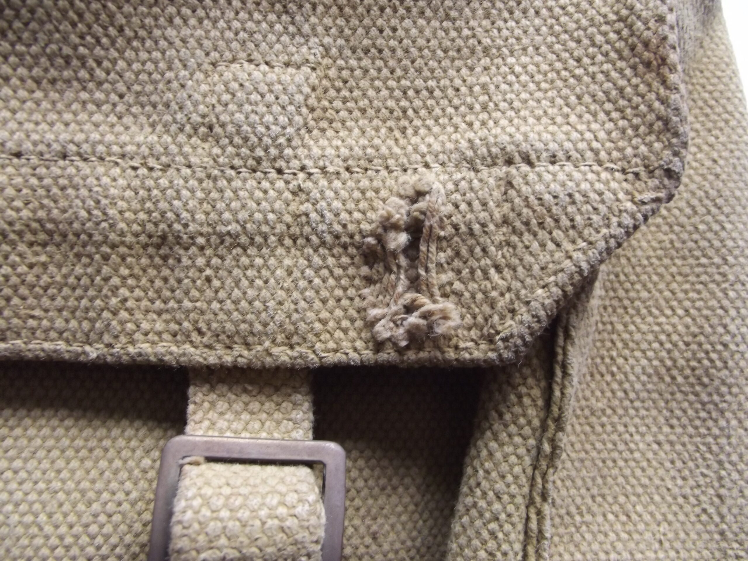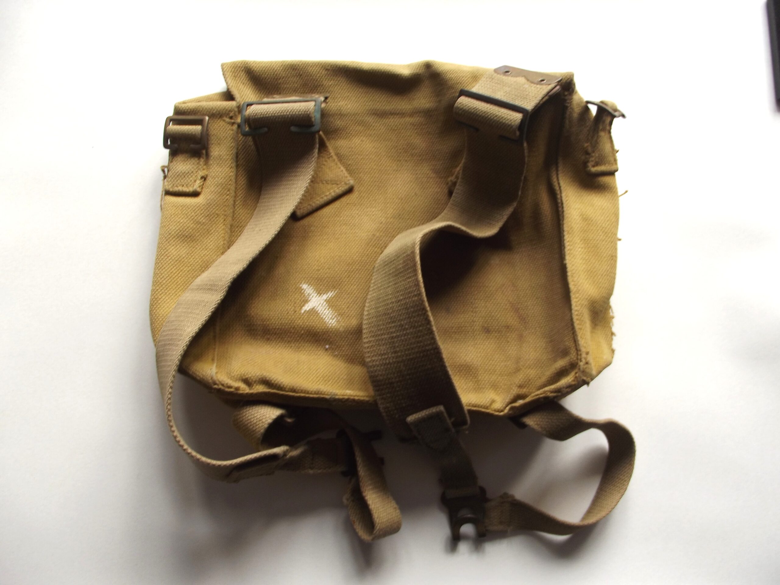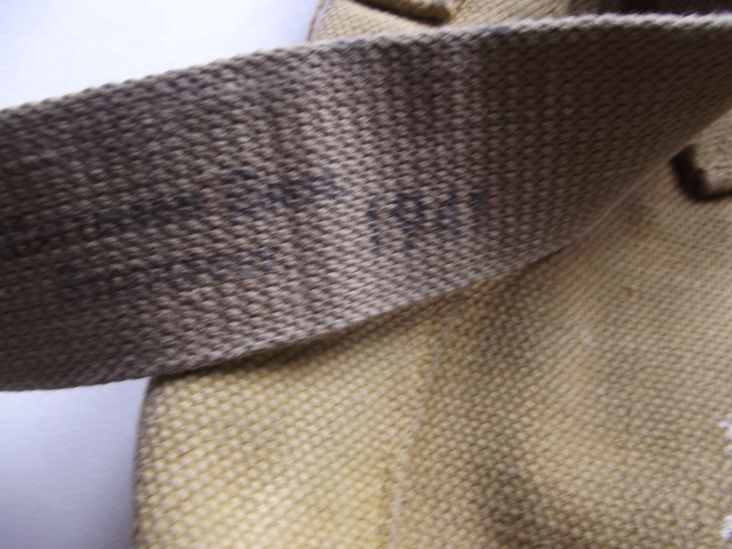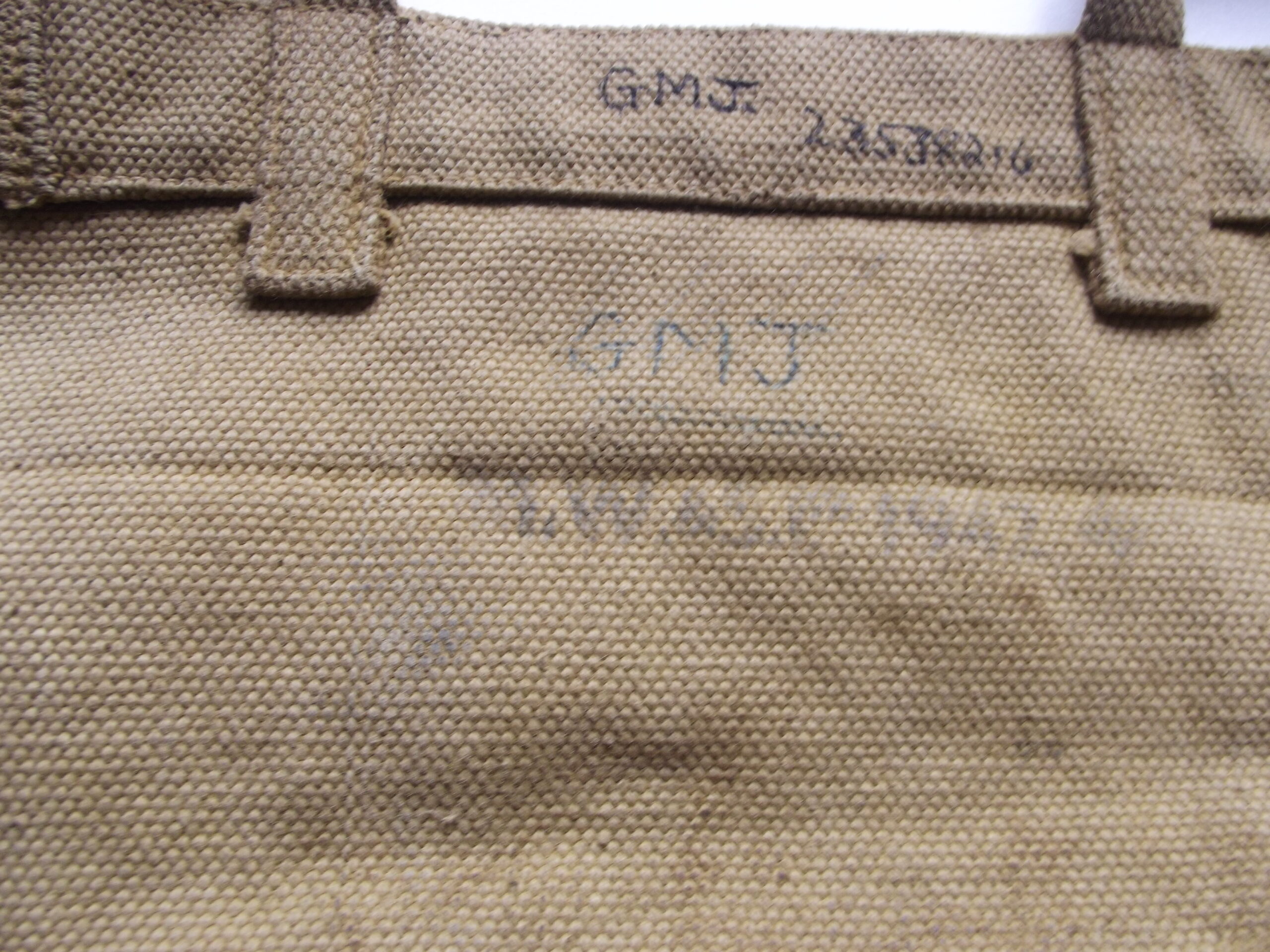 WW2 37 ptn small webbing haversack and shoulder straps in good used condition. It is maker marked M.W & S Ltd with the war department arrow and the date 1942.