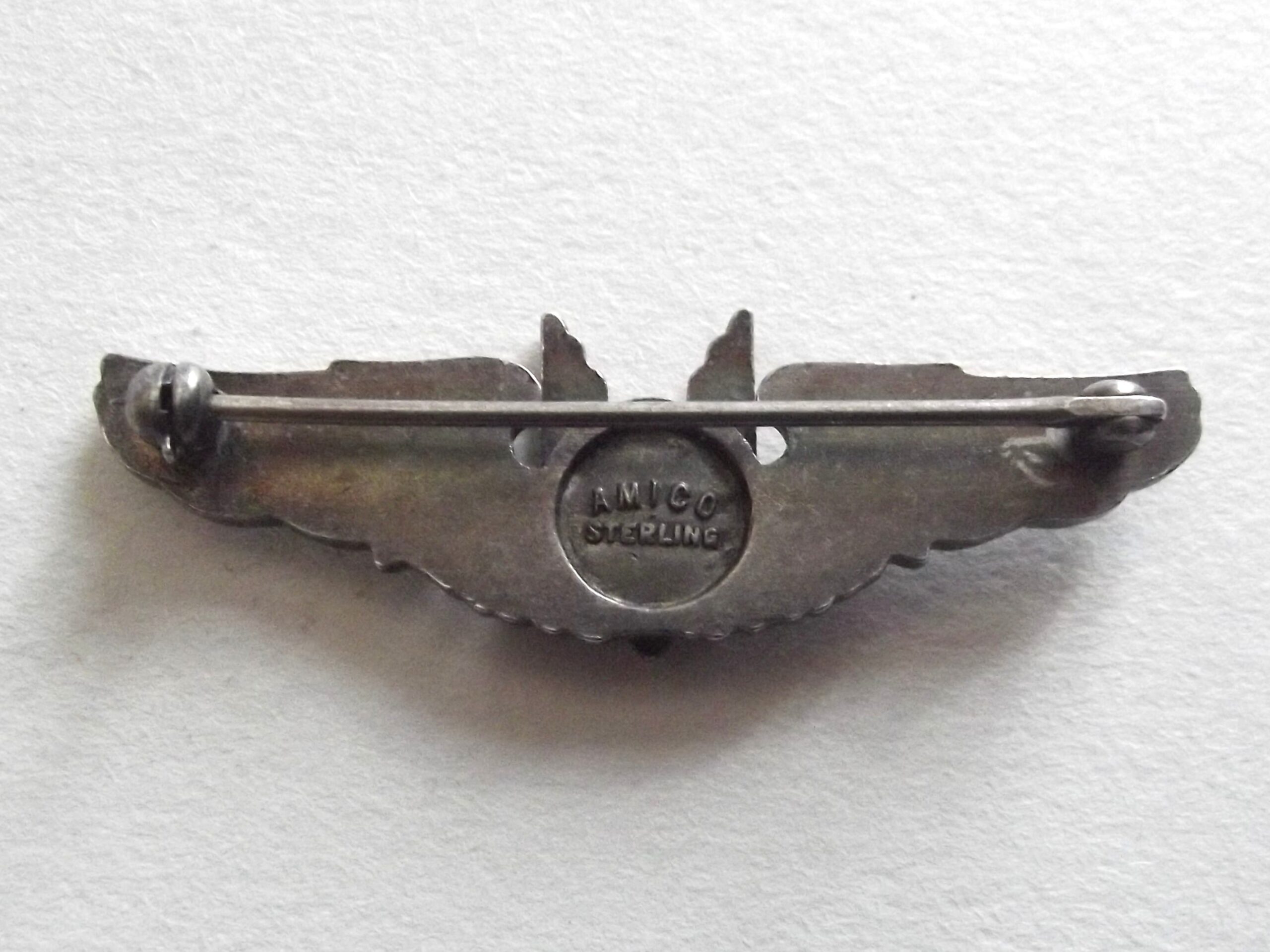 WW2 American 2 inch sterling silver wing in good used condition. It is maker marked Amigo and marked sterling.