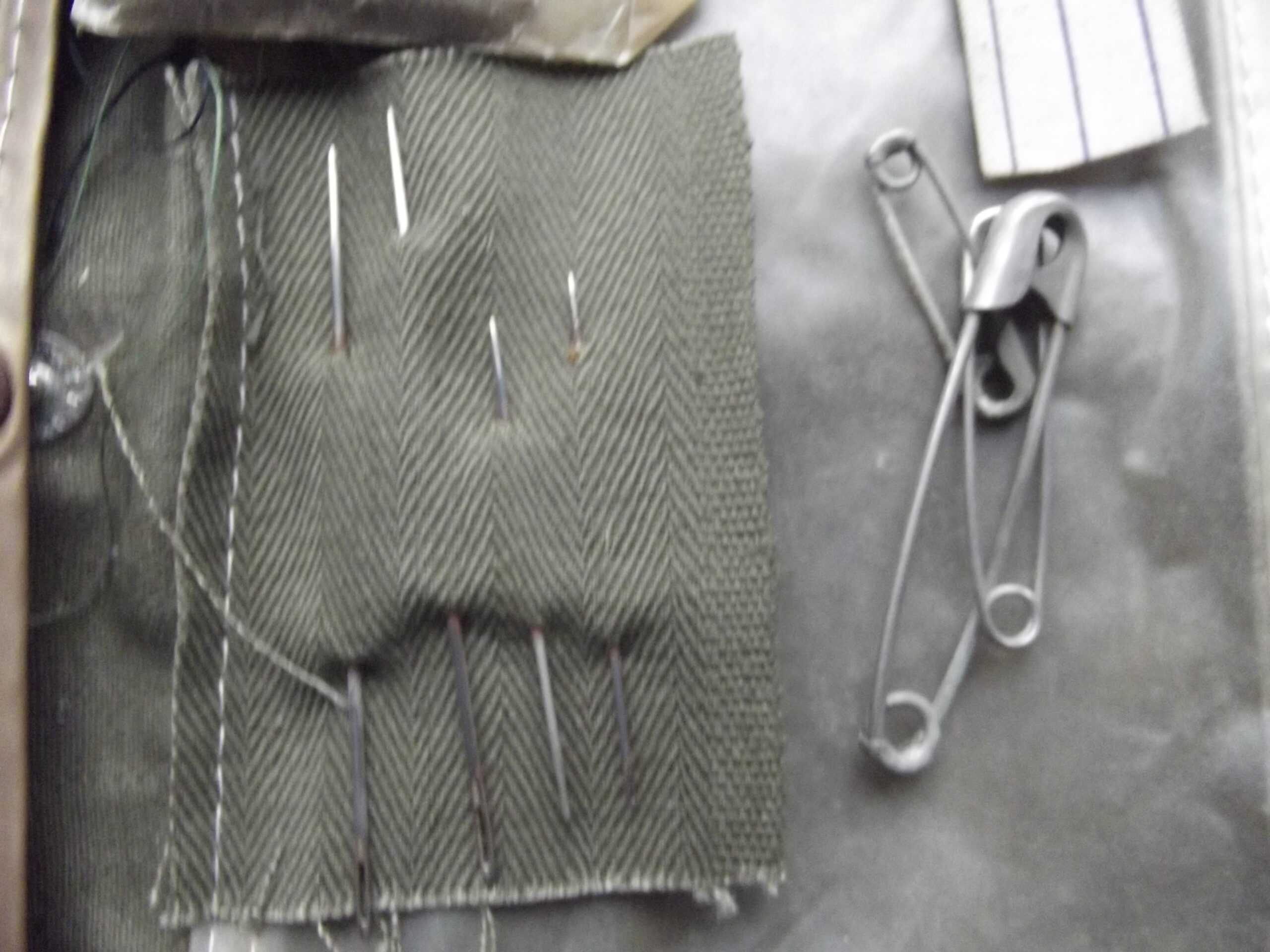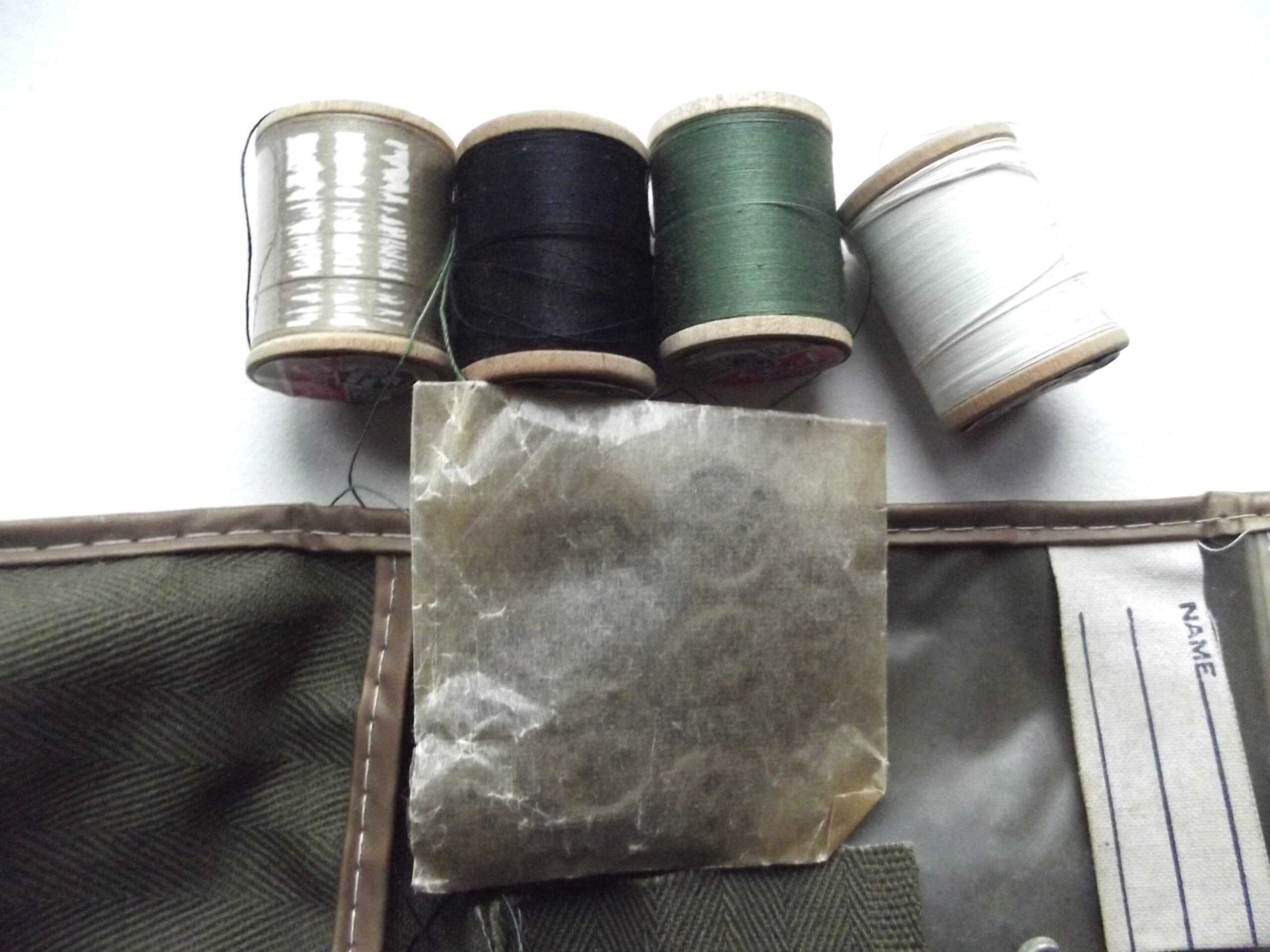 WW2 American house wife’s kit in good used condition. The kit has a packet of buttons with four reels of thread.