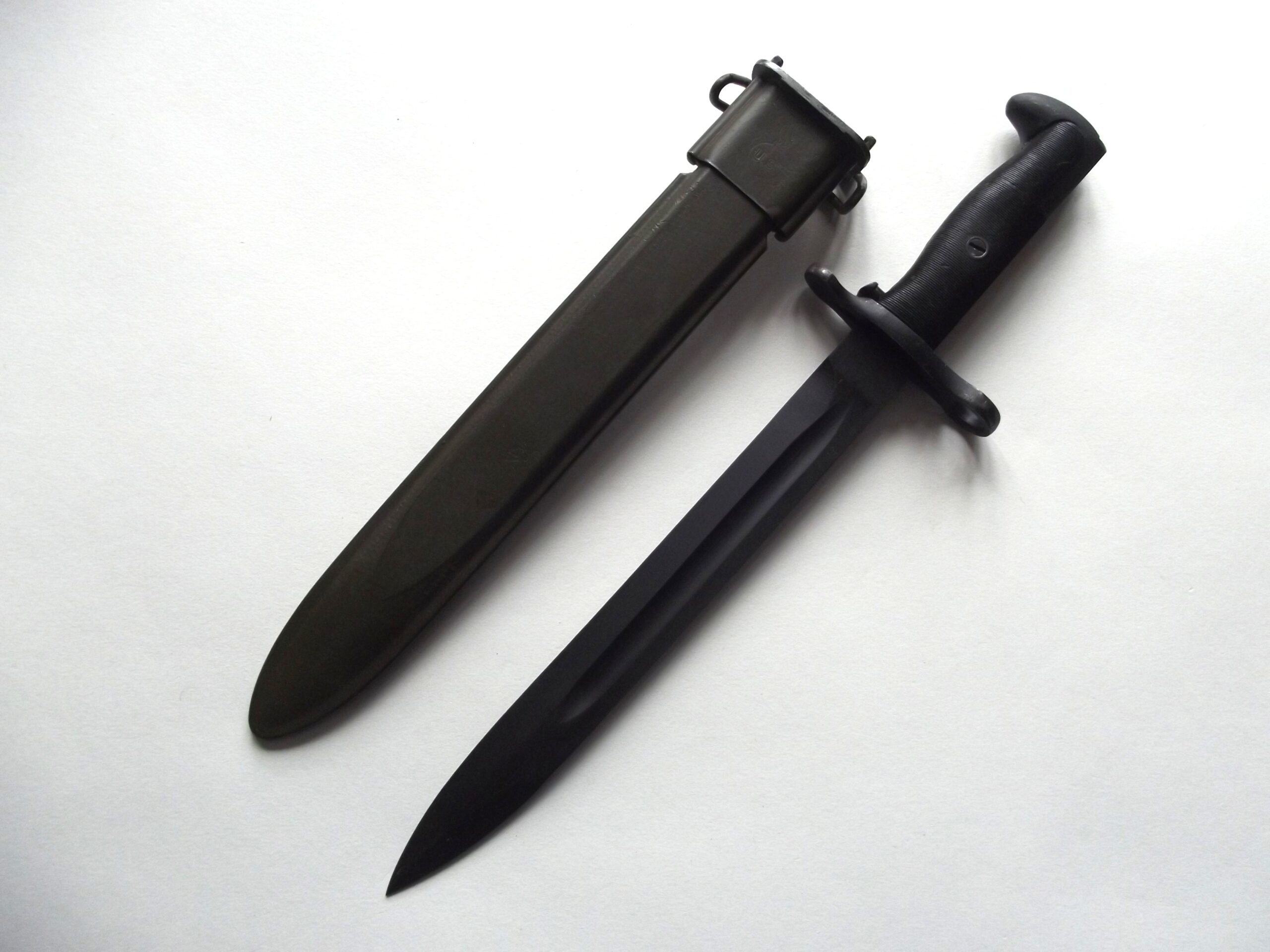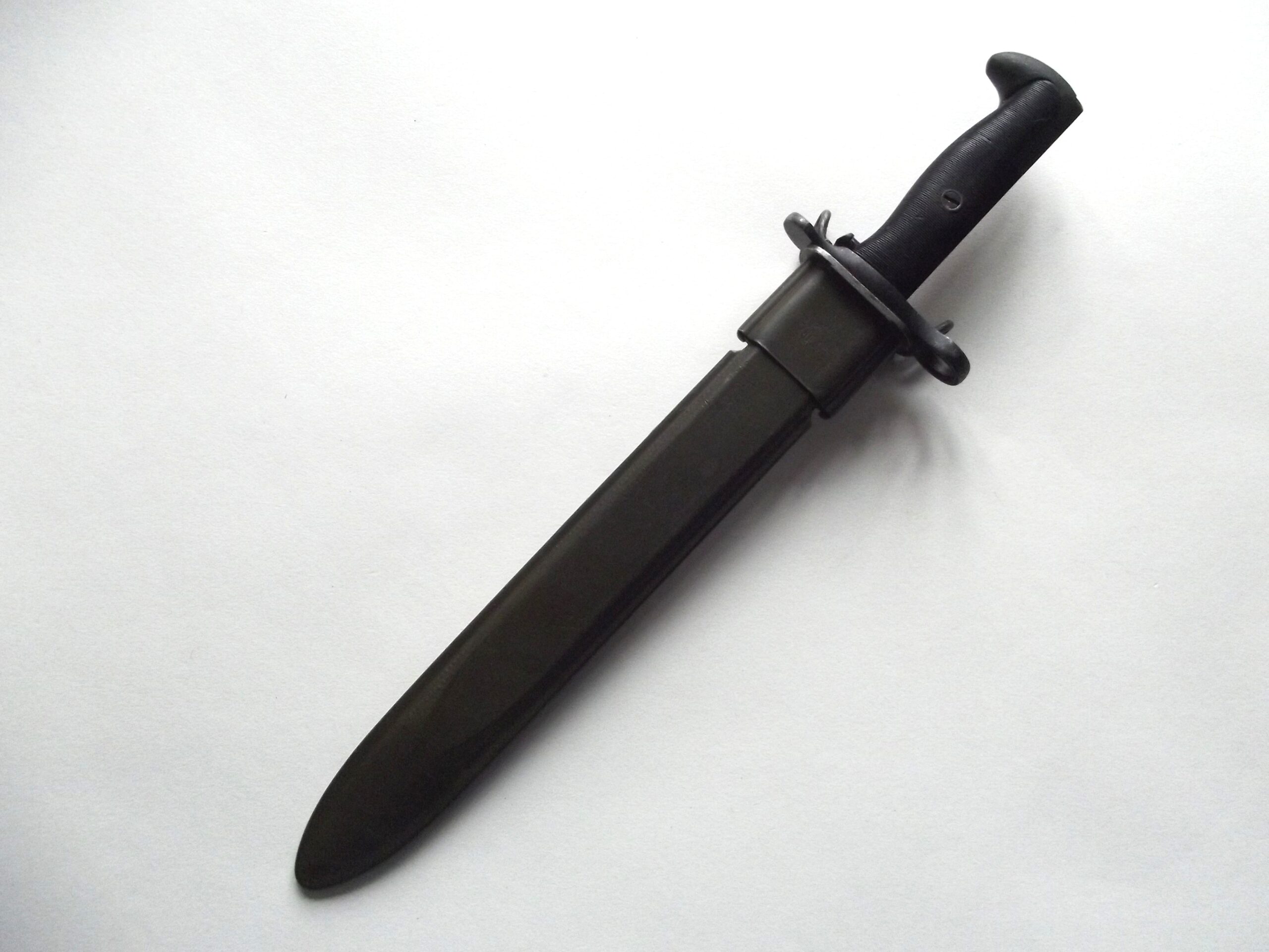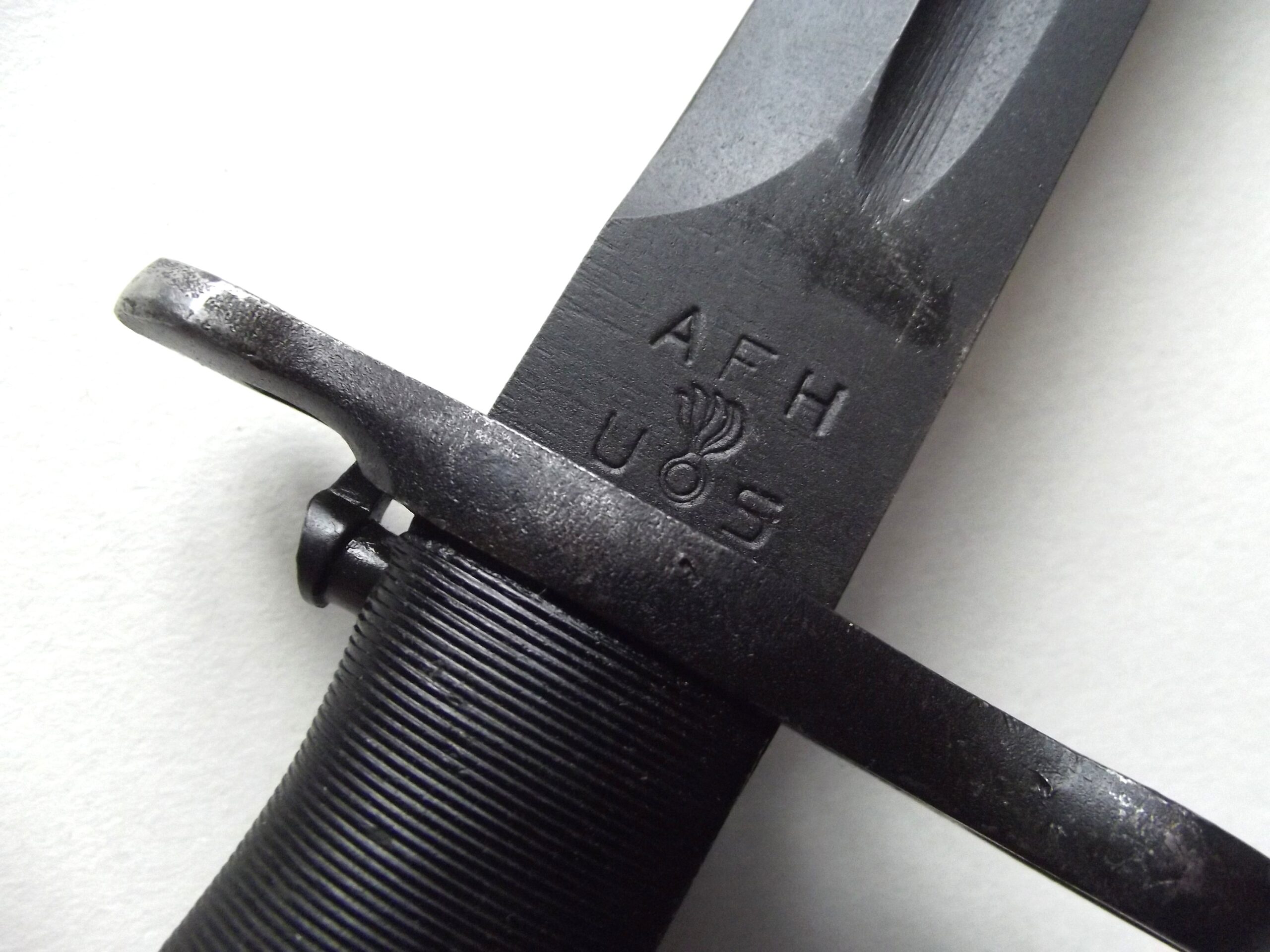 It has its factory finish intact with its black grips in place. The bayonet shows signs of use with age related wear showing.