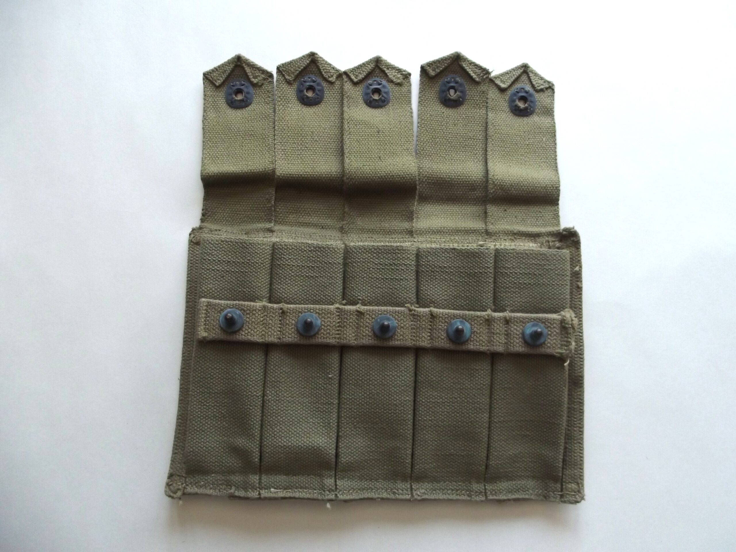 WW2 American Thompson webbing five mag pouch in good used condition. It shows age related wear from storage.