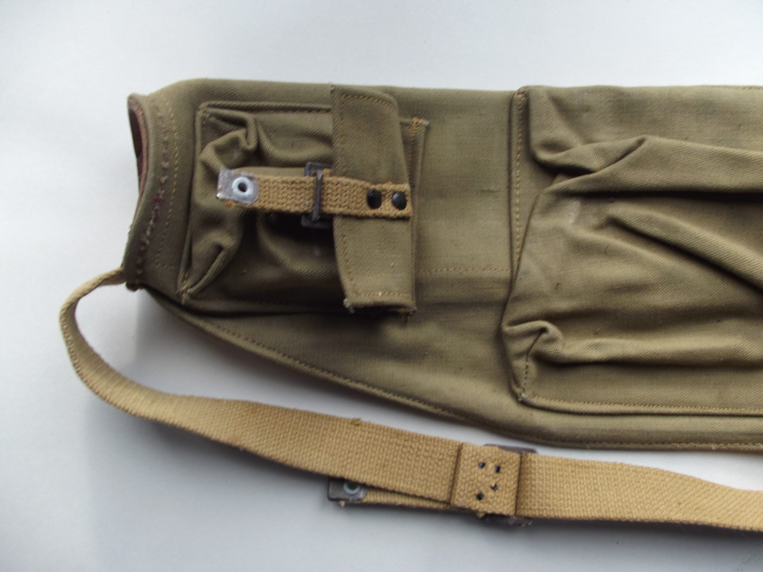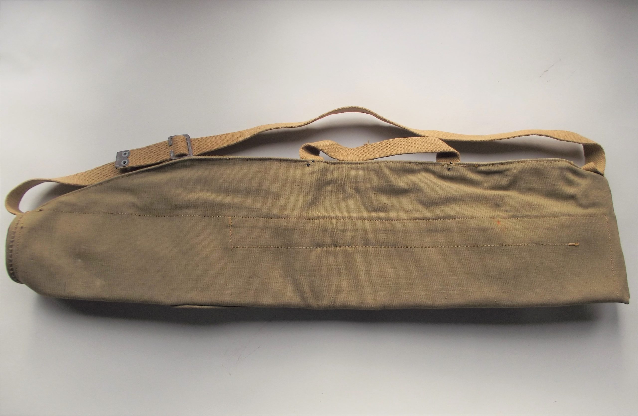 WW2 Canadian Bren barrel bag in very good un-issued condition. The webbing barrel bag shows age related wear on the metal parts due to storage the webbing barrel bag has the Canadian war department arrow with a maker mark of C.R.H and the date 1943 showing clearly. The Bren barrel bag is in excellent condition, please see the photographs for further details.
