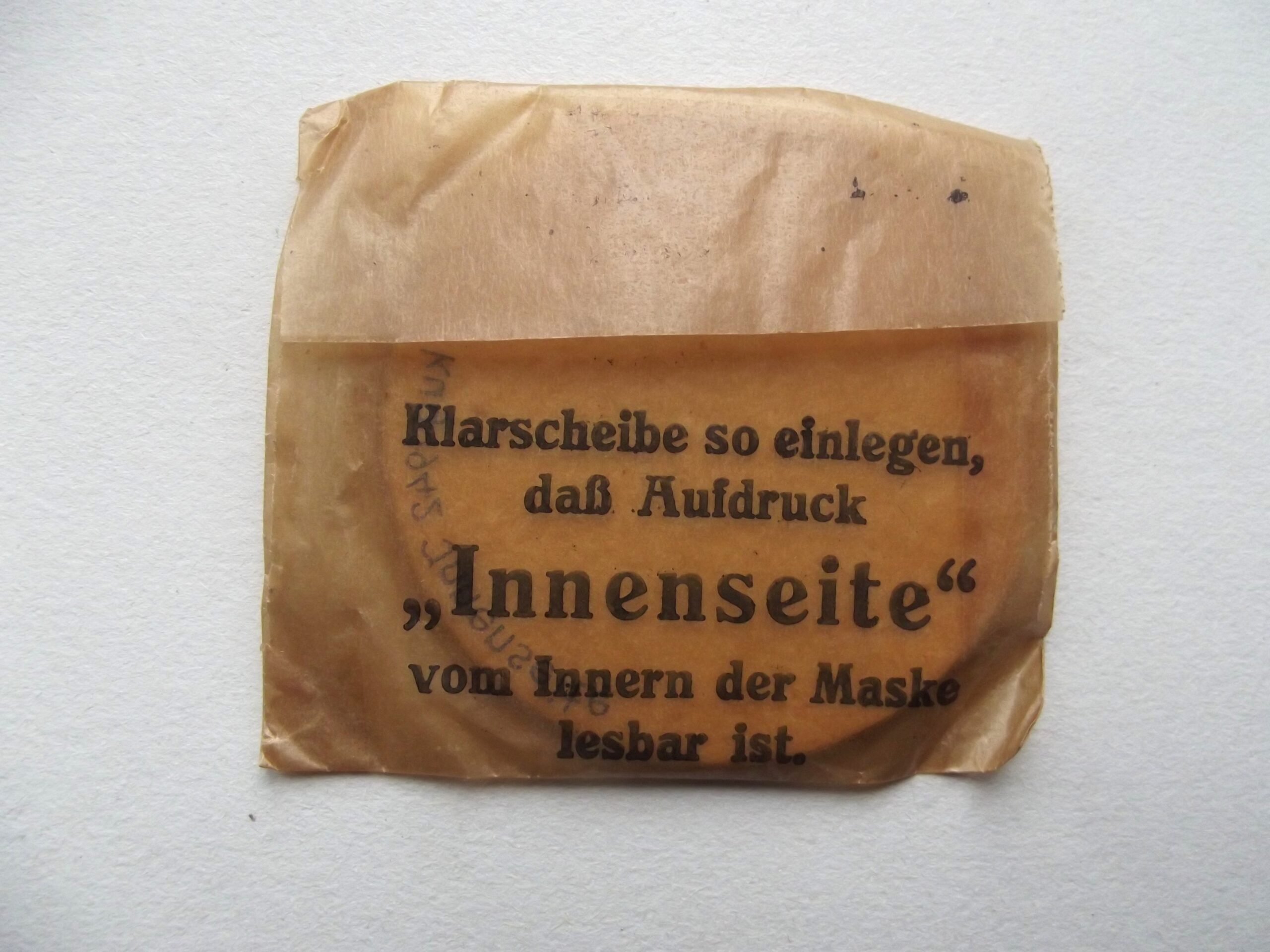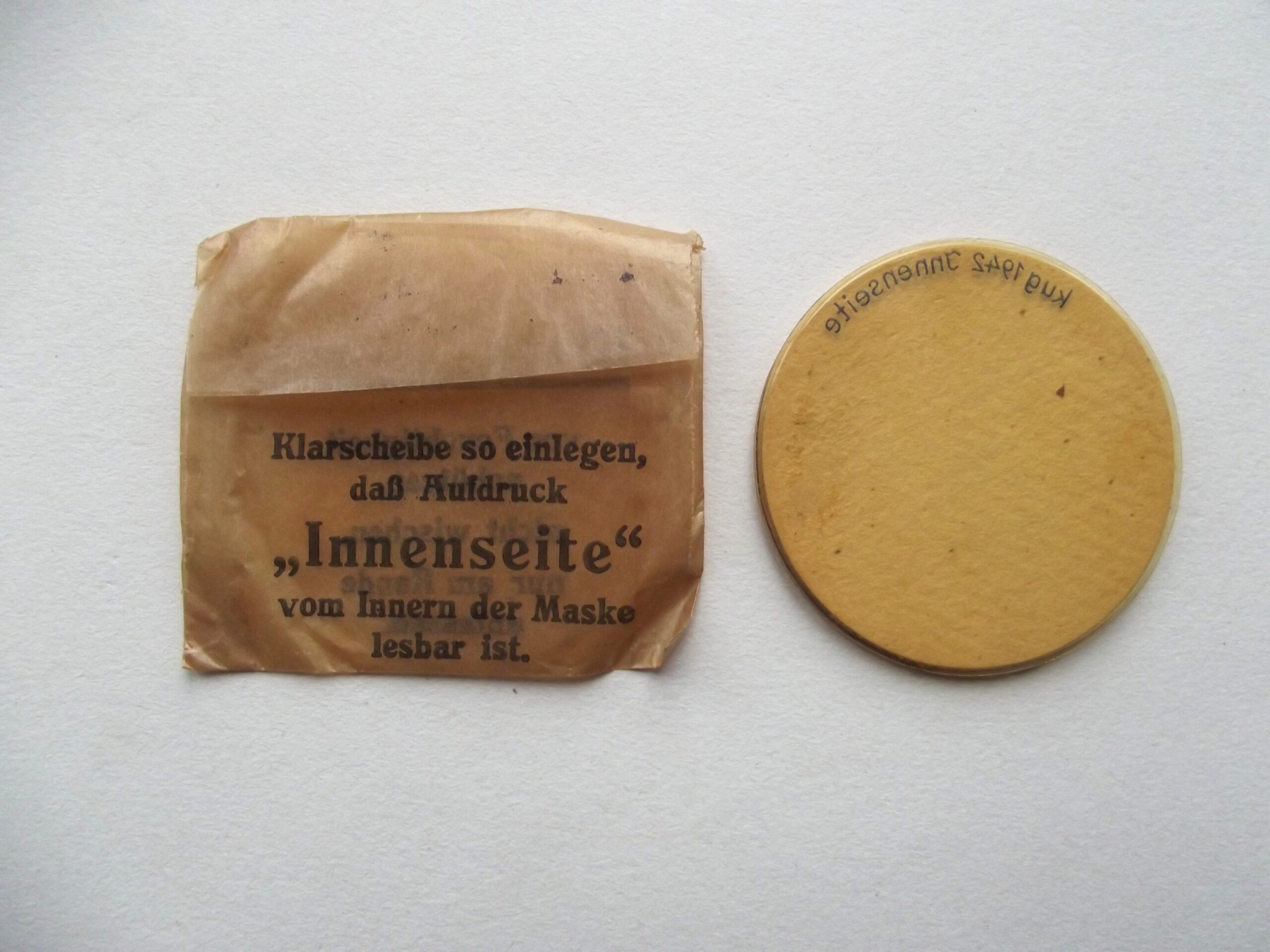 WW2 German military spare gas mask lenses in original packet. The lenses are dated 1942 in un-used condition.